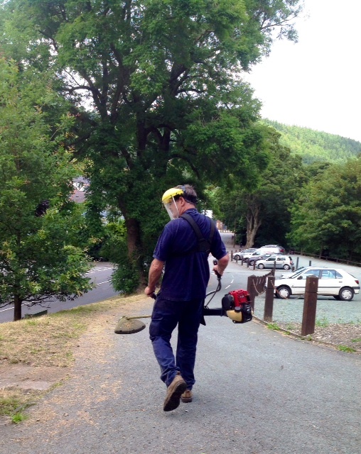 Kyran and Alec donned their protective helmets and worked their magic on the overgrown bank, whilst Mary took to tidying up the important area around the Cenotaph under the watchful gaze of a weary walker munching his sarnies on the bench nearby.