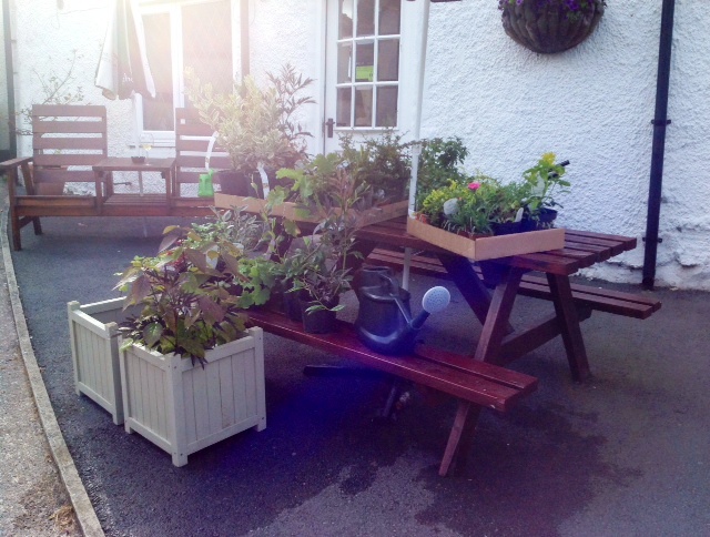 What better way to mark and celebrate a special family occasion than with a bit of a ‘Pimp my Pontfadog’ plant up? That’s how Team Cygnets chose to mark a special 30th birthday – a fantastic roast beef and Yorkshire pud lunch cooked by Head of Chefiness, Max, after his Sunday lunch service at Cygnets, followed by a planting and tidy-up on the memorial bank in Pontfadog – oh, and a couple of containers outside the restaurant for good measure.